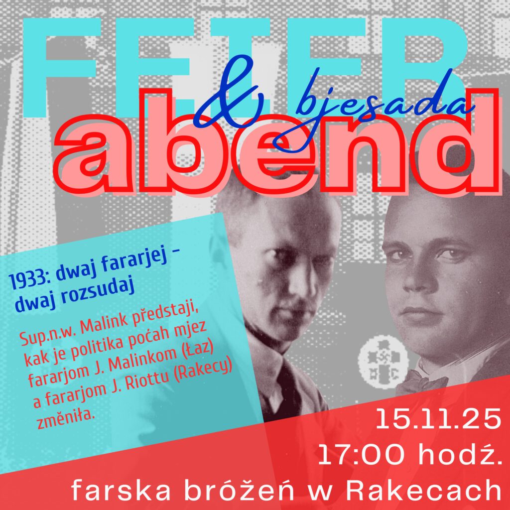 Sup. n. w. Malink přednošuje wo tym, kak je politika poćah mjez fararjom Jurjom Malinkom we Łazu a fararjom Juliusom Riottu we Rakecach změniła.