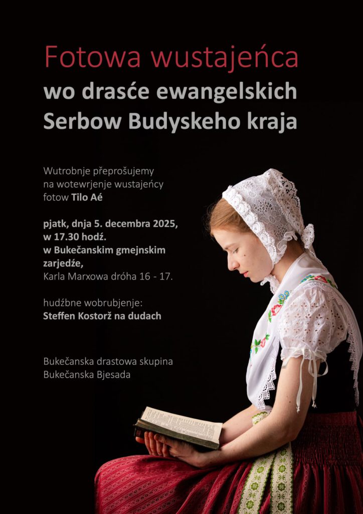 05. decembra w Bukecach wotewrjena fotowa wustajeńca je hišće hač do 30.06.2026 k wotewrjenskim časam gmejnskeho zarjada widźeć. Fotograf Tilo Aé z Brandisa pola Lipska je tutón jónkrótny projekt hromadźe z holcami a žonami Bukečanskeje wosady zwoprawdźił. Na 18 fotach su wšelake warianty drasty ewangelskich Serbow Budyskeho kraja widźeć. W Bukecach chodźachu hišće hač dosrjedż 19. lětstotka w tutych drastach. Po tym so wona poněčim ze wšědneho žiwjenja zhubi a načasna moda so přesadźi.
